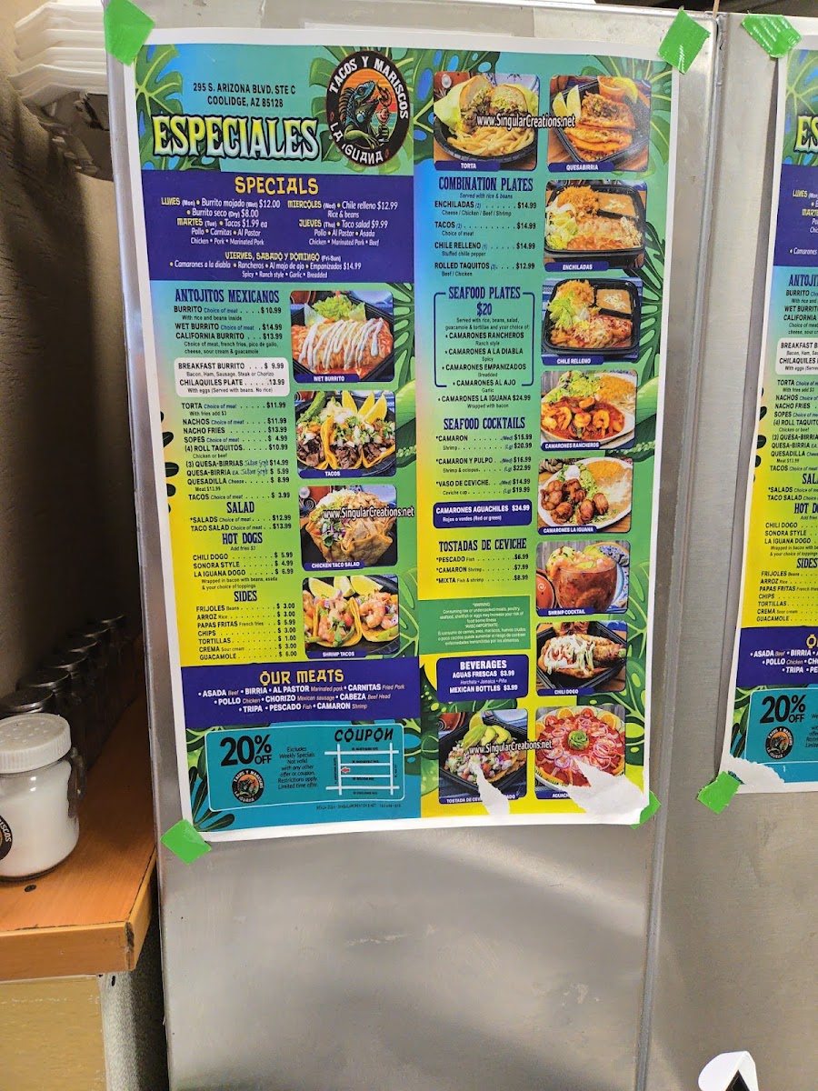 If you’re looking for a place that combines delicious seafood with the comforting flavors of traditional tacos, Tacos Y Mariscos La Iguana is the spot. With a menu full of flavor-packed dishes and a casual, inviting atmosphere, it’s no wonder this restaurant has earned such a loyal following. Whether you’re a local or just passing through Coolidge, AZ, make sure to stop by and experience what this gem has to offer!